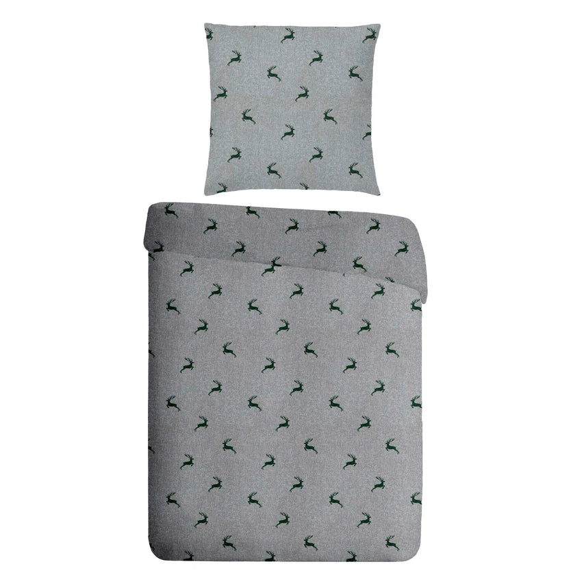 Die Winterbettwäsche „Hirsch“ Flanell kombiniert traditionelles Landhausdesign mit wohliger Wärme. Der fein angeraute Flanell aus 100 % Baumwolle ist besonders weich und temperaturausgleichend – perfekt für gemütliche Winternächte. Durch die graue Lodenoptik und das elegante Hirschmotiv entsteht ein edler, alpiner Look, der jedes Schlafzimmer in eine Wohlfühloase verwandelt.