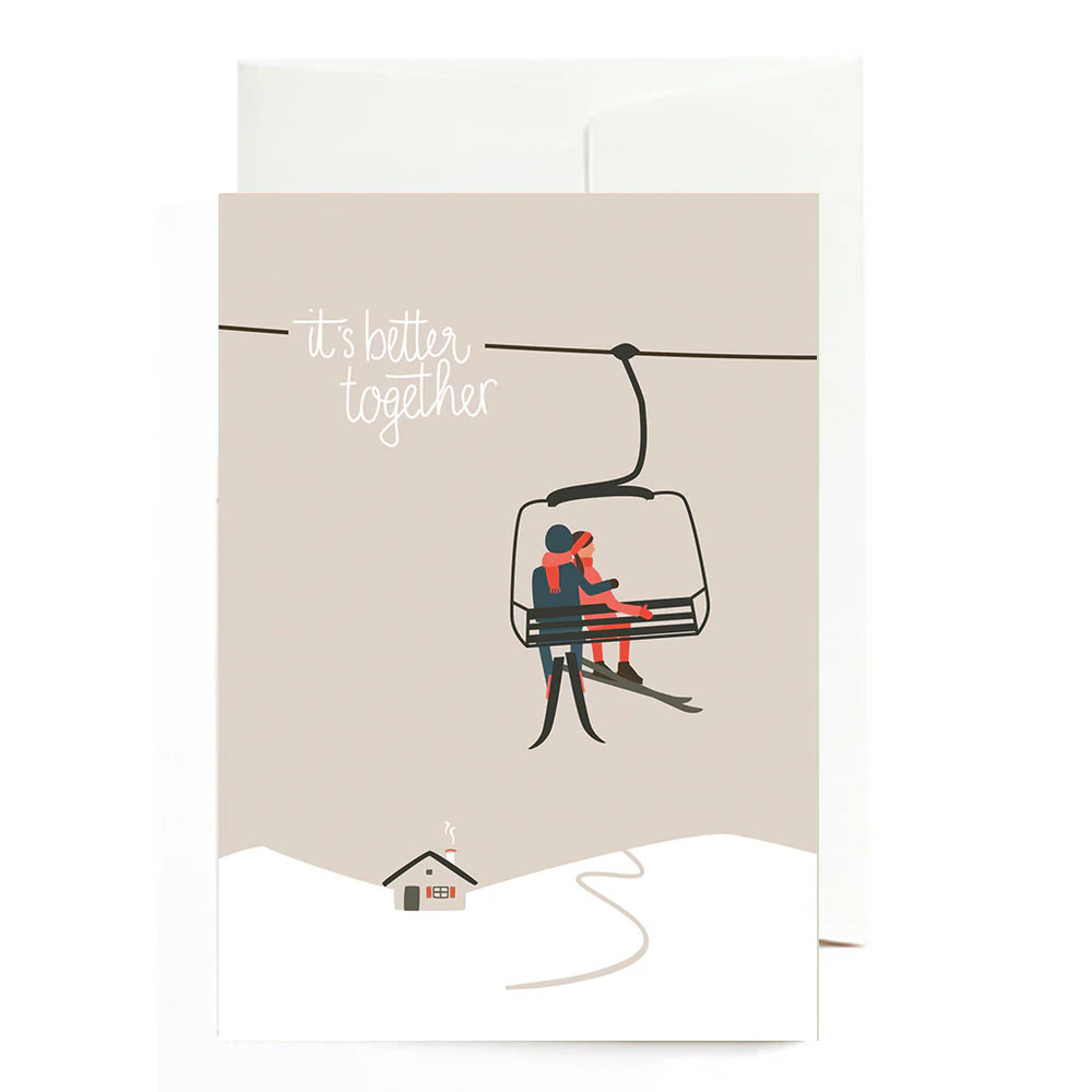 Die Grußkarte It's better together fängt den Zauber verschneiter Tage und die Romantik der Berge ein. Ob als Liebesgruß aus dem Skiurlaub oder als kleine Aufmerksamkeit zwischendurch – diese Karte sagt auf charmante Weise „Ich denk an dich“. Nachhaltig produziert und liebevoll gestaltet – ein Stück Winterliebe zum Verschicken.
