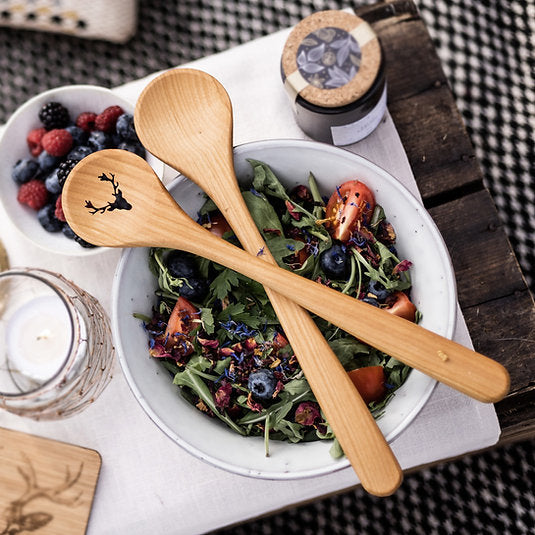 Inhalt: 2-teiliges Set, ein Löffel mit Hirschmotiv, ein schlichter Löffel